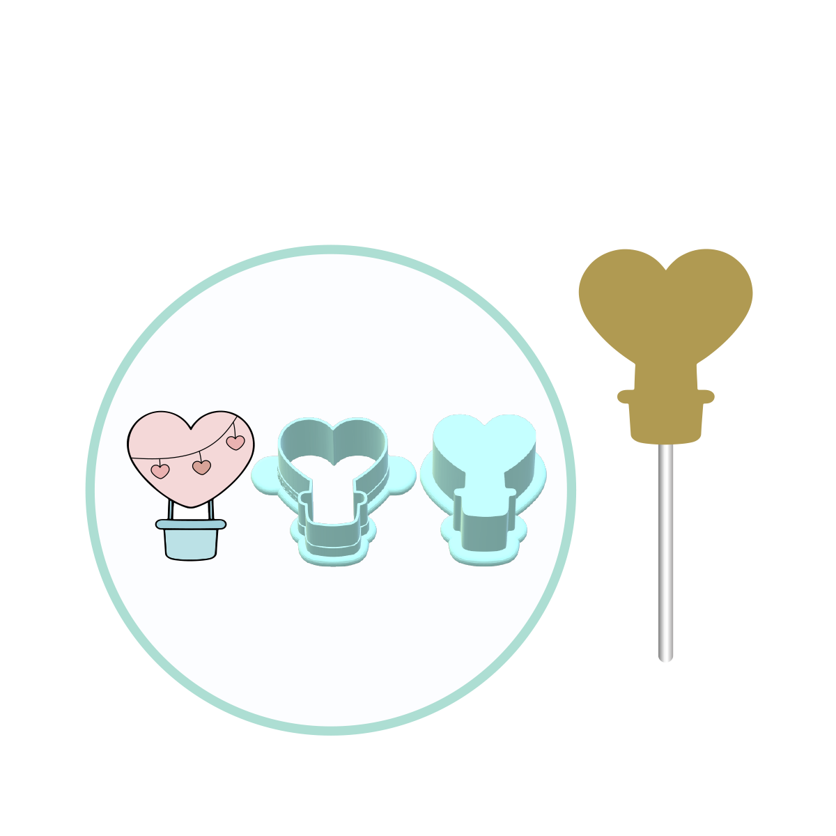 Valentines Heart Air Balloon Cake Pop Mold | Deluxe Cutter, Popper, and Tray Option